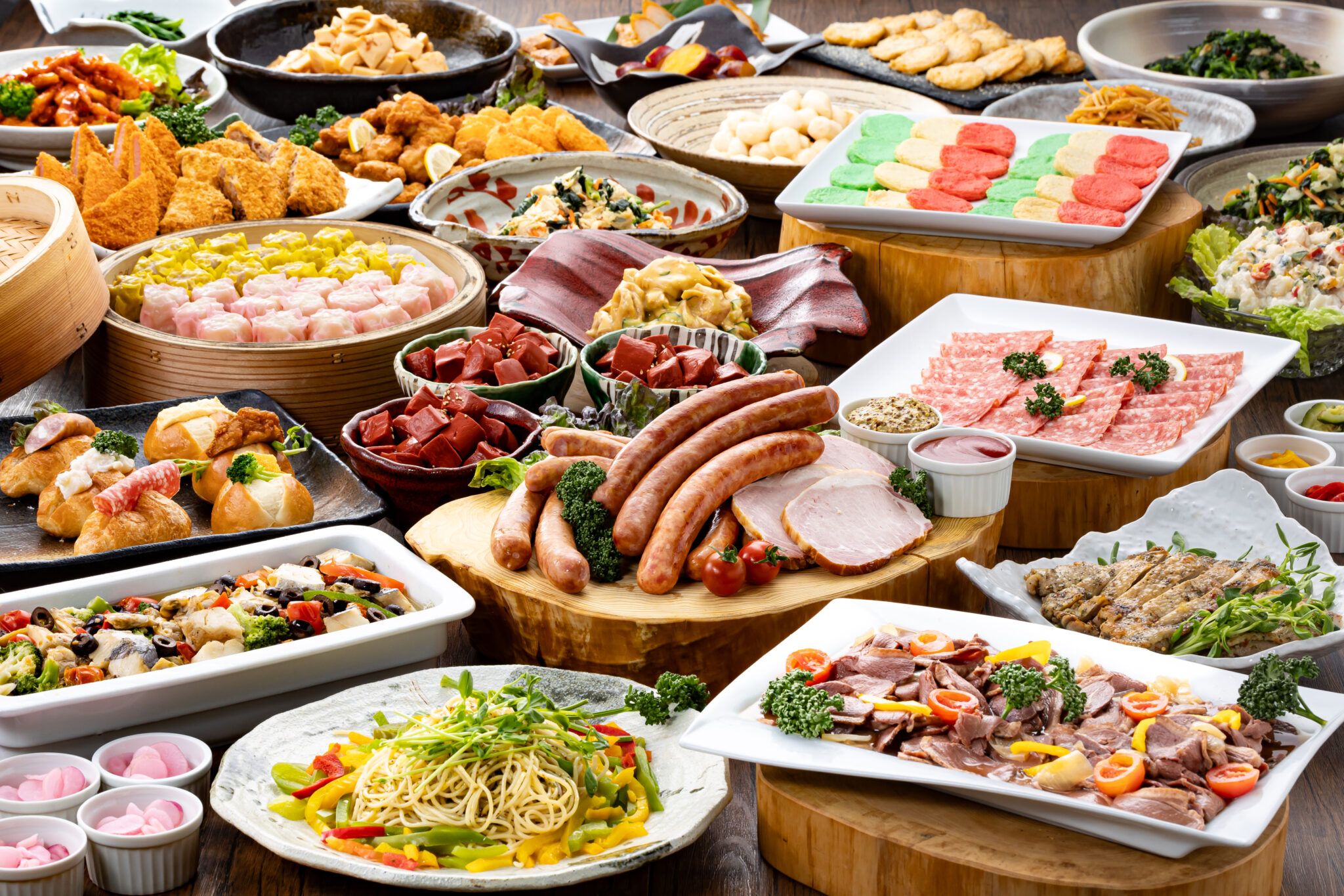 - 【あったか鍋】 ・あごだし鍋 ・キムチ鍋 ・ゴマ豆乳鍋 ・豚肉 ・鶏肉 ・カキ ・魚(鮭・鱈) ・つみれ ・うどん等 ・その他野菜 【スイーツ】 ・チョコレートファウンテン ・マシュマロ ・ミニケーキ各種 【ライブキッチン】 ・自家製グリルソーセージ ・旬の天ぷら ・おでん(玉子、赤こんにゃく、大根等) 【バイキングテーブル】 ・自家製ソーセージ ・滋賀県大豆の手作り豆腐 ・丁字麩のからし酢味噌和え ・赤こんにゃく煮 ・ミートローフ ・カキフライ ・里芋の煮物 ・若鶏唐揚げ ・コロッケ ・ポテトフライ ・ミートボール ・その他 【サラダ】 ・フレッシュ野菜 ・ポテトサラダ ・ゴボウサラダ 【ごはん】 ・日野町産米 ・季節の炊き込みご飯 ・ビーフカレー 【汁物】 ・野菜の味噌汁 【ドリンクバー】 ・ソフトドリンク ・コーヒー ・紅茶 ※食材の仕入れ情勢により予告なくメニューを変更する場合があります。 ※写真はイメージです。