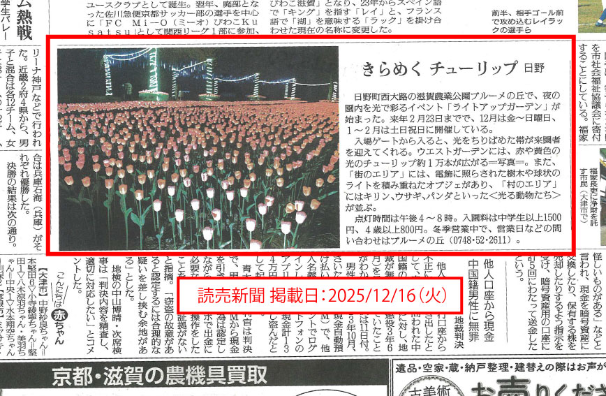 読売新聞にて、ライトアップガーデン2025が紹介されました。