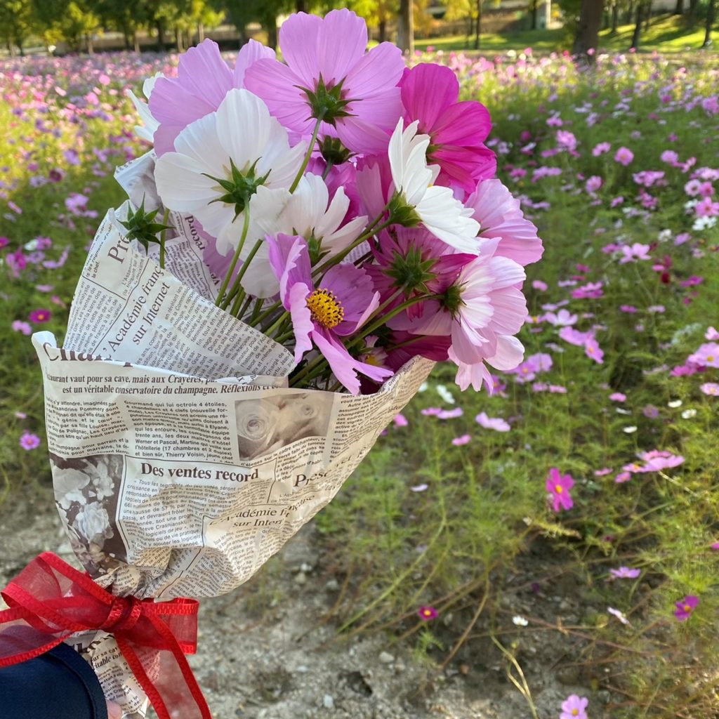好きな色のコスモスを摘んで、自分だけのブーケを作ろう♪