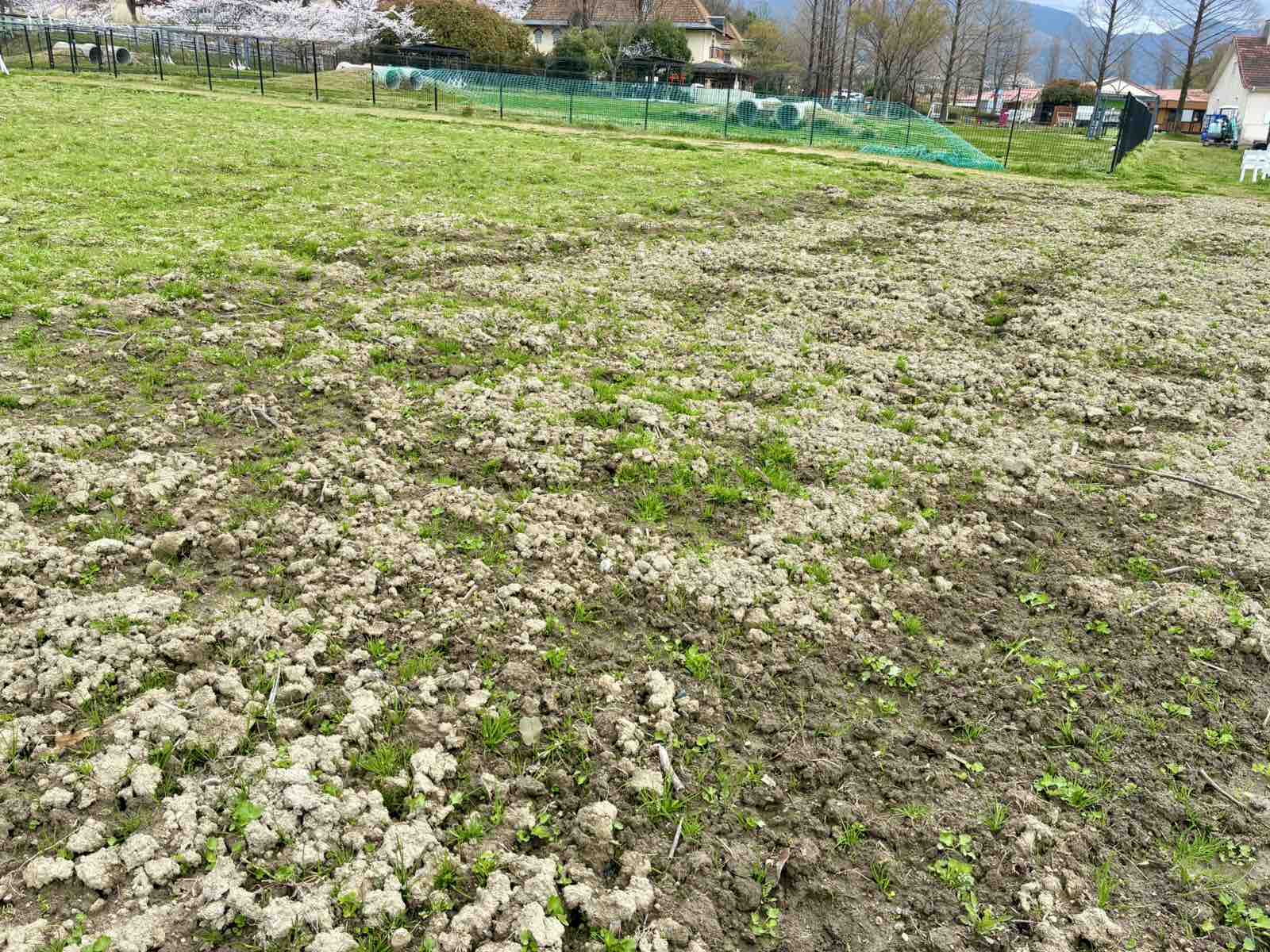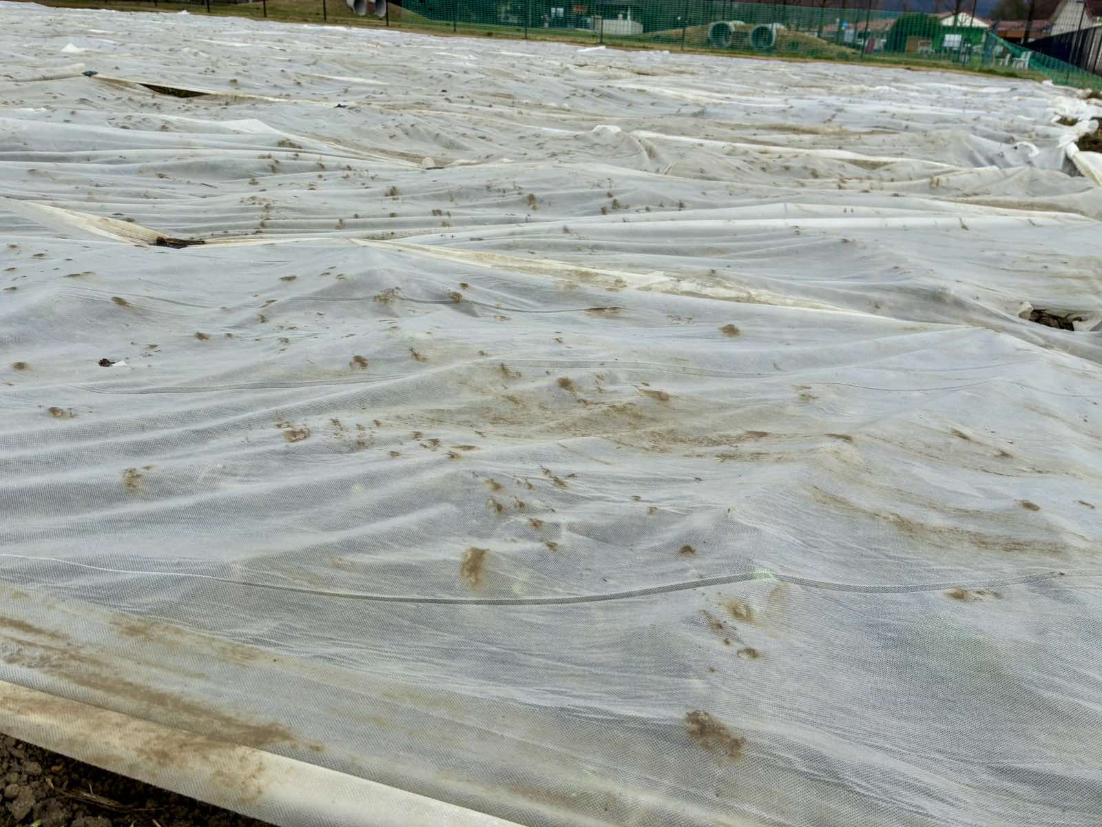 種まきが終わり、不織布を被せて植栽しています。